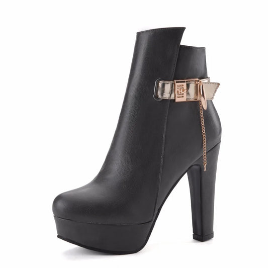 Fly Bitch Fashion Dangle Chain Buckle Ankle Boot Heels